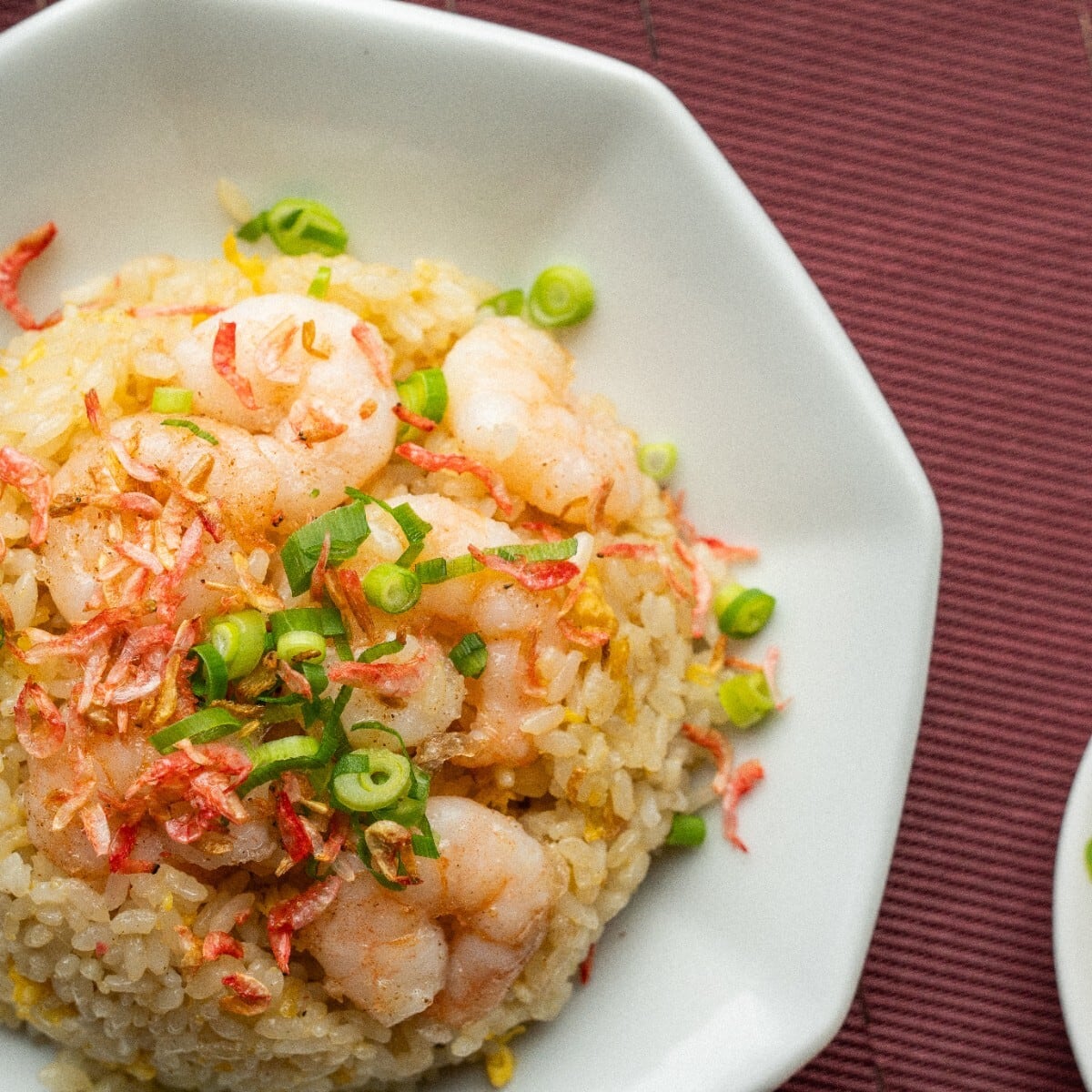 プリップリのえびで、お子様がこぼれるような笑顔に。今では、家族みんなの幸せ炒飯です。希少な台湾産のサクラエビをトッピングしております。